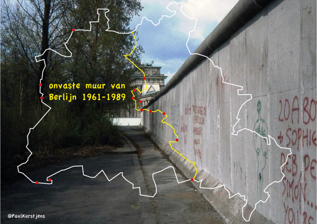 Een onvaste muur die iedereen kent is de muur die tussen 1961 en 1989 de stad Berlijn in tweeën splitste. Die staat er niet meer, hoewel in mentale zin op de achtergond soms aanwezig. Het ene land was de schaduw van het andere, vice versa. Of is dat nog steeds zo?